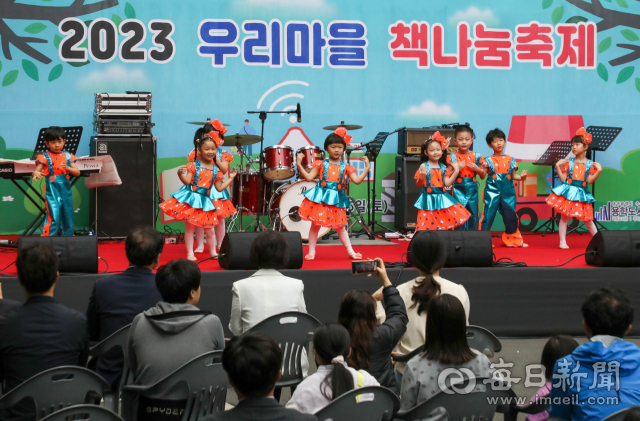 올해 첫 법정 기념일이 된 '제1회 도서관의 날'(4월11일)과 '제59회 도서관 주간'(4월12일~18일), 세계 책의 날(4월23일)을 기념해 도서관마다 지역주민을 위한 다채로운 행사를 진행하고 있다. 15일 대구 수성구 용학도서관에서 열린 '우리마을 책나눔축제'를 찾은 주민들이 어린이들이 꾸민 무대 공연을 보며 즐거워하고 있다. 우태욱 기자 woo@imaeil.com