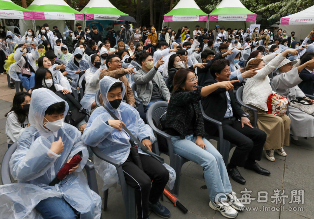 15일 대구 2.28기념중앙공원에서 열린 '2023 대구시 대표청소년어울림마당 개막식'을 찾은 청소년들이 대구대 치어리딩 동아리 '비호'의 축하공연을 보며 즐거워하고 있다. 청소년 어울림마당은 전국 110개 시·군·구 청소년수련시설을 중심으로 무대공연 및 경연과 전시 등 문화체험을 공유하는 활동으로, 대구시는 올해 주요 행사로 이날 개막식을 시작으로 5월 성년의 날 기념행사, 7월 대구국제청소년스포츠축제 연계 행사, 8월 세계 청소년의 날 연계 행사, 10월 행복페스티벌 등을 계획하고 있다. 우태욱 기자 woo@imaeil.com