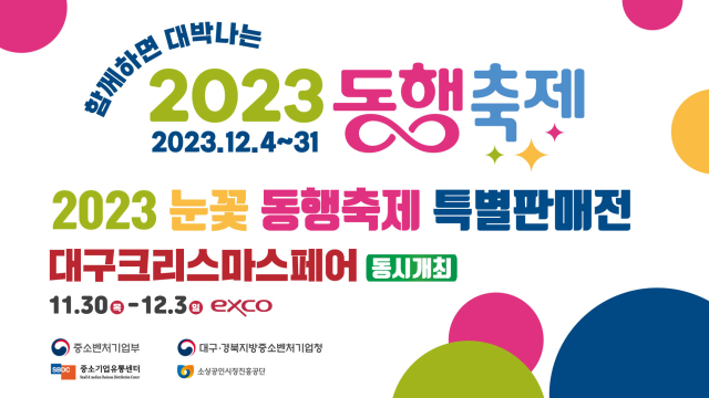 중소벤처기업부 대구·경북지방중소벤처기업청은 2023 대한민국 동행축제 사전 붐업 행사로 '2023 대구크리스마스페어'와 함께 '동행축제 특별판매전'을 오는 30일부터 12월 3일까지 엑스코 서관에서 개최한다.