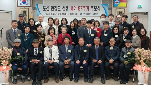 대구경북흥사단(대표 김상경)은 지난 14일 민족운동단체 흥사단의 창립자인 '독립운동가 도산 안창호 선생' 서거 87주기 추모식을 대구경북흥사단 쾌재정에서 개최했다.이날 추모식에서 밀양흥사단 조점동 전 지부장의 "도산과 함께하는 시간" 이라는 주제의 특강을 가졌다.
