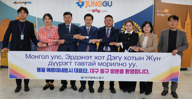 대구 중구(구청장 류규하)는 지난 27일 몽골 에르데네트시 뱜바다시 조릭트바야르 시장을 비롯한 대표단과 만나 의료관광 협력 강화를 위한 면담을 가졌다.