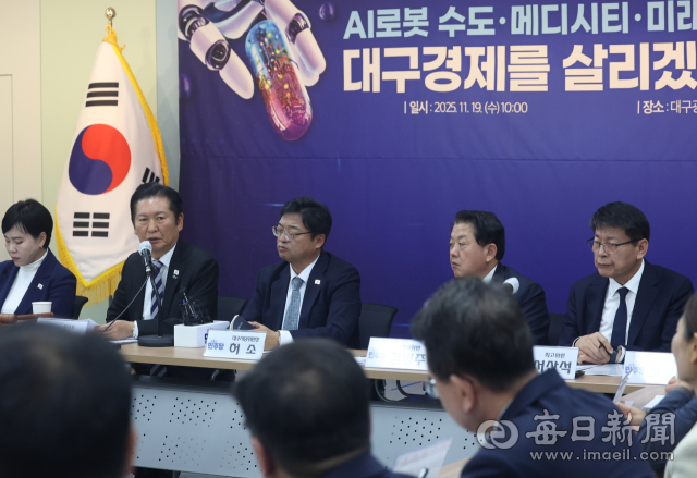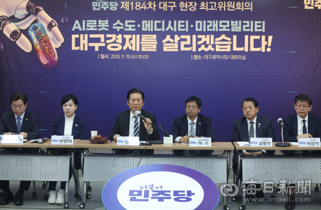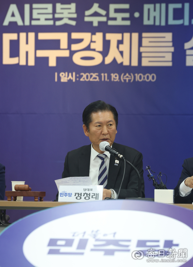더불어민주당 정청래 대표가 19일 대구 중구 더불어민주당 대구시당에서 열린 제184차 대구 현장 최고위원회의에 참석해 모두발언하고 있다. 안성완 기자 asw0727@imaeil.com
