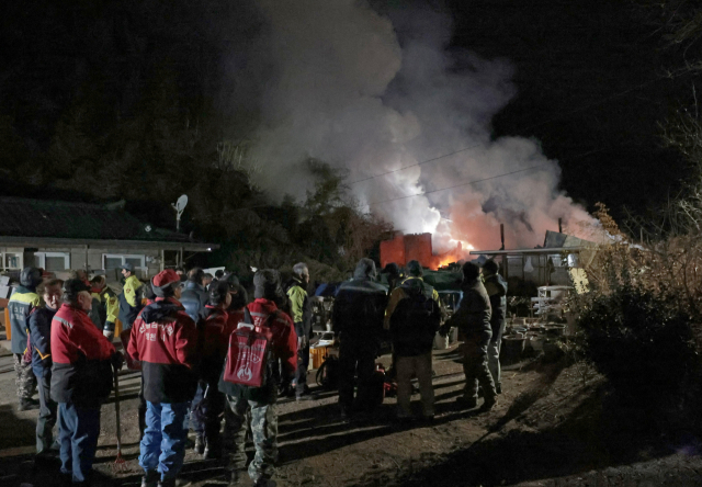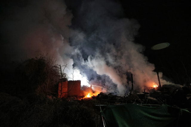 14일 오후 7시 11분쯤 경북 영천시 화산면 가상리의 한 단독주택에서 화재가 발생해 인근 백학산으로 번져 산불로 확산됐다. 산림·소방당국은 산불 진화 차량 54대와 119산불특수대응단 등 인력 231명을 투입해 진화에 나서 1시간여 만인 오후 8시 33분쯤 주불을 잡았다. 이 불로 주택 1동이 전소됐으나 인명 피해는 없는 것으로 파악됐다. 사진은 화재가 발생한 주택에서 잔불을 정리하는 모습. 김영진 기자 kyjmaeil@imaeil.com