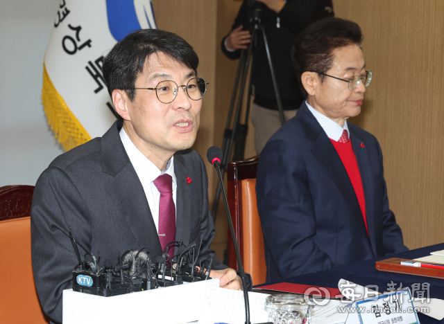 20일 경상북도청에서 열린 '대구·경북 행정통합 추진 협의 회의'에서 김정기 대구시장 권한대행이 인사말을 하고 있다. 안성완 기자 asw0727@imaeil.com
