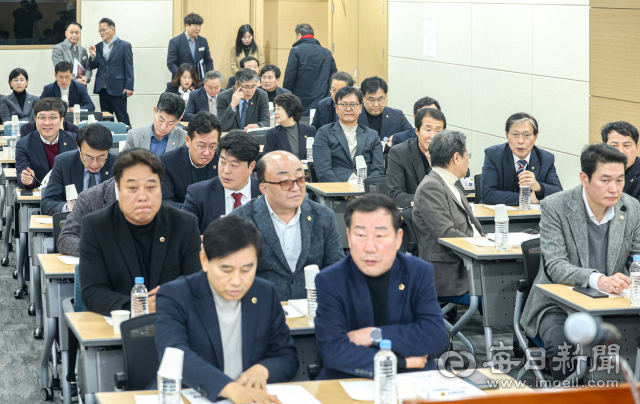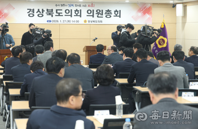 대구·경북(TK) 행정통합 논의가 급물살을 타고 있는 27일 경북도의회에서 열린 '경상북도의회 의원총회'에서 도의원들이 대기하고 있다. 경북도의회는 28일 본회의에서 행정통합안에 대한 최종 입장을 정리할 방침이다. 안성완 기자 asw0727@imaeil.com