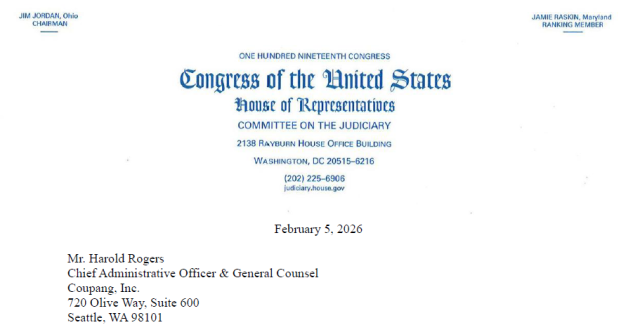 미국의회 하원 짐 조던 법제사법위원장과 스콧 피츠제럴드 규제개혁·반독점소위원장이 5일 해롤드 로저스 쿠팡 한국법인 임시대표에 대한 소환장을 미 하원 법사위 명의로 발부했다. 이 소환장과 함께 붙은 서한엔 한국정부가 미국기업을 대상으로 수 년 간 차별적 규제를 벌여온 것에 대한 지적과 함께 공정거래위원회를 겨냥한 문구가 다수 포함된 것으로 나타났다. 특히 이재명 대통령의 쿠팡을 향한 발언도 도마 위에 올렸다.