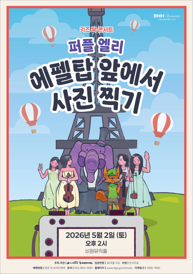 비원뮤직홀은 어린이날을 기념해 오는 5월 2일(토) 키즈 북 콘서트 '퍼플 엘리 – 에펠탑 앞에서 사진 찍기'를 선보인다.